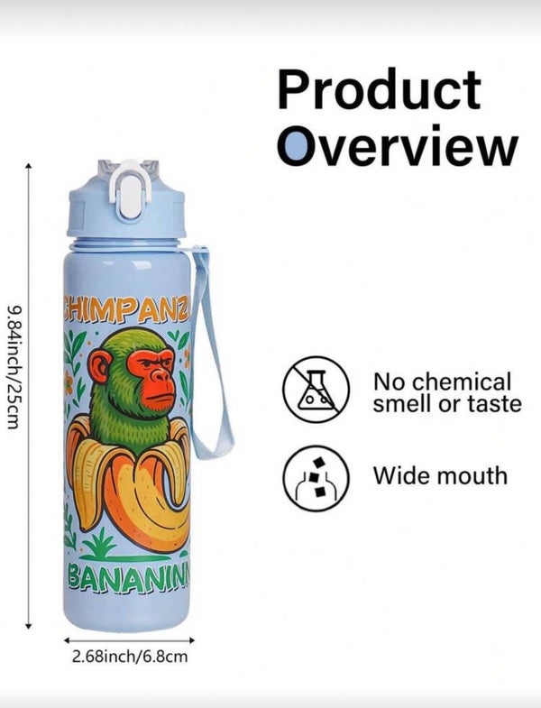 1pc 750ml Themed Plastic Straw Water Bottle, Leak-Proof When Inverted, Compact & Fashionable, Suitable For Children, Cycling, Camping, Hiking, Daily Use